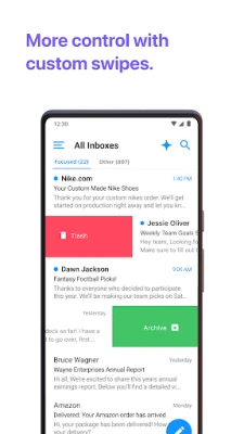 Glöm besväret med att växla mellan olika applikationer. Edison Mail förenar alla dina e-postkonton, oavsett om du har ett eller tjugo, i en enda, överskådlig inkorg. Vi stöder smidigt alla större leverantörer – inklusive Outlook, Yahoo, Hotmail, iCloud, Office/Outlook 365, Exchange, AOL, Gmail och IMAP-konton på din Android-enhet. Upplev oöverträffad snabbhet när Edison Mail hämtar meddelanden blixtsnabbt, vilket dramatiskt minskar den tid du lägger på att hantera din e-post. Att hitta viktiga detaljer om prenumerationer, resplaner, räkningar eller paketleveranser har aldrig varit enklare.