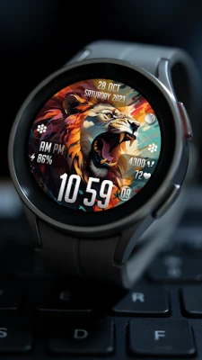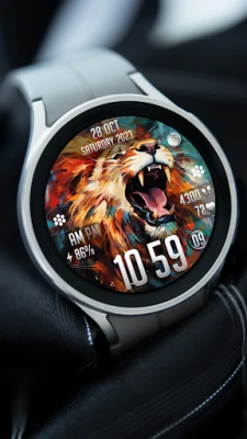 Upptäck FLW058, en fängslande urtavla för Wear OS som förkroppsligar vildmarkens majestät med sitt slående lejonmotiv. Denna djurinspirerade design är skräddarsydd för dig som söker en unik kombination av estetik och funktionalitet direkt på handleden. FLW058 förvandlar din smartklocka till ett personligt uttryck, där varje blick på skärmen blir en påminnelse om naturens kraft och skönhet, levererad med den tillförlitlighet och innovation som Wear OS-användare förväntar sig.