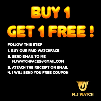 Som ett uppskattat tack för att du väljer MJ Watch Faces, kan du ta del av ett exklusivt kupongerbjudande. När du har förvärvat någon av de tillgängliga urtavlorna från MJ Watch Faces, skicka ett e-postmeddelande till [email protected]. Det är viktigt att du bifogar ditt digitala kvitto från Google till e-postmeddelandet. Efter att ditt köp har bekräftats kommer du att motta en speciell kupong som du kan använda vid framtida val av urtavlor. Det är MJ Watch Faces sätt att belöna din lojalitet och öppna dörren till ännu fler designalternativ för din Wear OS-enhet.