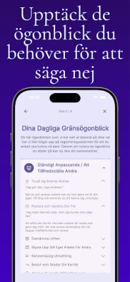 Kärnan i upplevelsen med **I Can Say No** ligger i dess flexibla dagboksfunktion. Här kan du fritt reflektera, organisera dina tankar och registrera händelser med enkla anteckningar och taggar. Den inbyggda gränsträningen ger dig konkreta verktyg för att identifiera när och hur du bör sätta stopp, och stöttar dig i att formulera små, hanterbara steg mot en mer balanserad tillvaro. För att du ska hålla kursen ser smarta påminnelser till att du reflekterar på morgonen och kvällen, samt ger dig motiverande knuffar under dagen. Följ din resa genom insiktsfull statistik som visar veckotrender och vanespårning, och låt de personliga insikterna guida dig med mild feedback. Appen innehåller även korta, kraftfulla mindfulnessövningar och antistressrutiner som du enkelt kan integrera i din vardag, för en stunds balans eller bättre sömn.