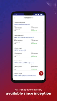 Ta din investeringsstrategi till nästa nivå med avancerade rapporter för kapitalvinster som hjälper dig att optimera dina skatteplaneringar. Investera direkt online i nya fondemissioner eller valfria fondsystem, och följ varje order steg för steg för full transparens tills enheterna tilldelas. Håll koll på dina systematiska investeringsplaner (SIP) och systematiska överföringsplaner (STP) med detaljerade rapporter om både pågående och kommande betalningar. En integrerad försäkringslista hjälper dig att aldrig missa en premie, samtidigt som du enkelt kan se foliodetaljer registrerade hos varje AMC.