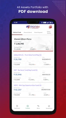 Med enkel inloggning via ditt Google-e-postkonto får du omedelbar tillgång till din finansiella värld. Spåra enkelt den historiska utvecklingen för din portfölj för att se hur dina investeringar har presterat över tid. Ladda ner fullständiga portföljrapporter som omfattar alla dina tillgångar, samt transaktionshistorik för valfri period. Appen gör det också möjligt att med ett enda klick ladda ner kontoutdrag från valfritt kapitalförvaltningsbolag i Indien, vilket förenklar administrationen avsevärt.
