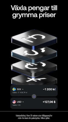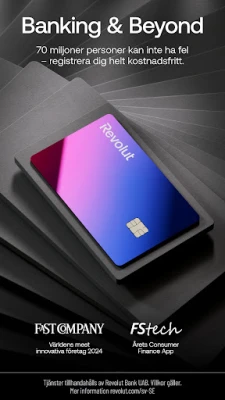 Ta kontroll över din ekonomi och förenkla din vardag med Revolut. Upptäck en värld där du smidigt hanterar dina pengar, oavsett om du föredrar fysiska kort, säkra virtuella alternativ som engångskort, eller bekvämligheten med Google och Apple Pay. Länka dina externa bankkonton för att samla alla dina utgifter på ett ställe och få en komplett översikt. När du reser utomlands kan du spendera med förmånliga växelkurser, nästan som hemma. Skräddarsy ditt fysiska kort för att spegla din stil, med möjligheter att uppgradera till exklusiva material som stål eller platina för en touch av lyx (vissa avgifter och villkor kan gälla).